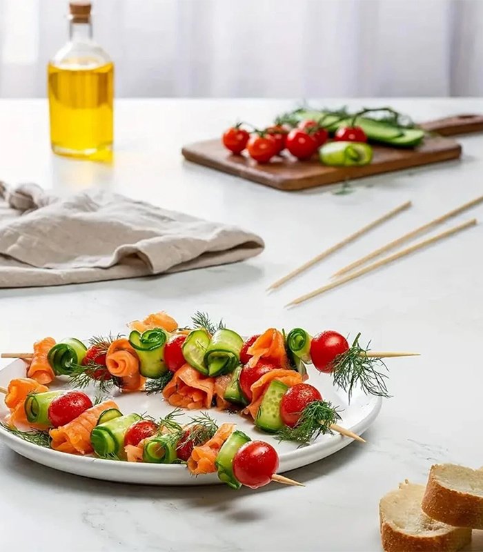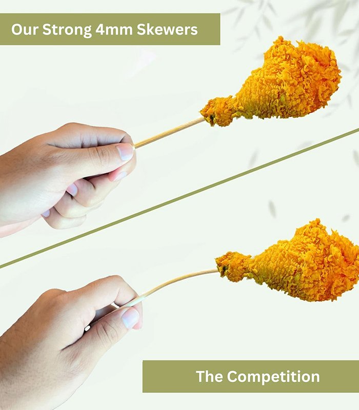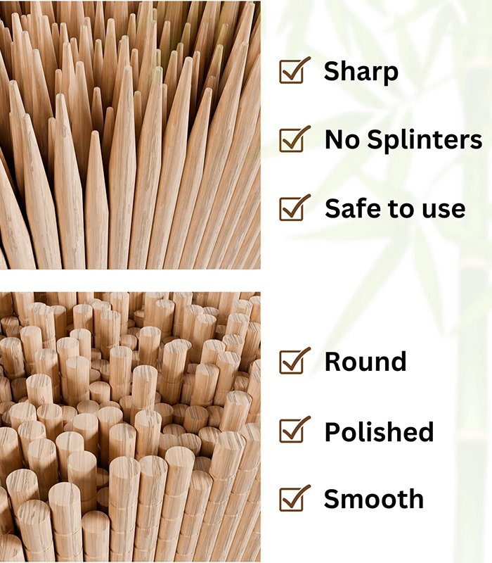 - خشب طبيعي: مصنوعة من الخشب الطبيعي، هذه الأسياخ آمنة غذائيًا ولا تضفي أي نكهات غير مرغوب فيها على المأكولات المشوية. استمتع بالمذاق النقي لشيش طاووق المتبل دون أي تدخل.