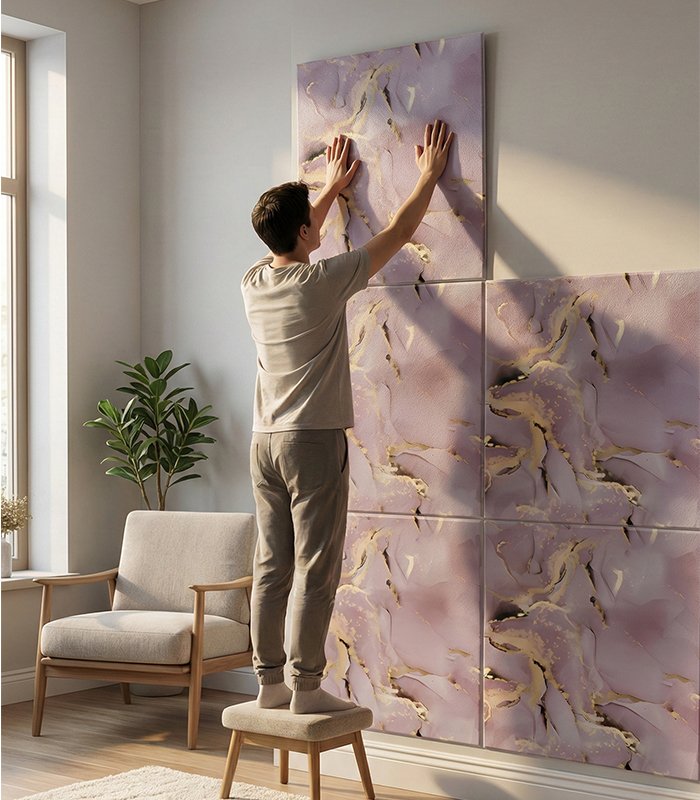 - تركيب بسيط:إنه نوع من فووم الحائط ذاتي اللصق، يتضمن الغراء، فقط تحتاج إلى تقشيره ولصقه. يوصى بلصق ورق الحائط على السطح الأملس والمستوٍ.