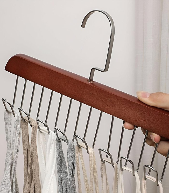 شماعات خشبية 8 هوك استالس، قابلة للتعديل لتعليق الأحزمة، الأشرطة، الملابس الداخلية، السكارفات، مع خطافات قابلة للطي لتنظيم الدولاب