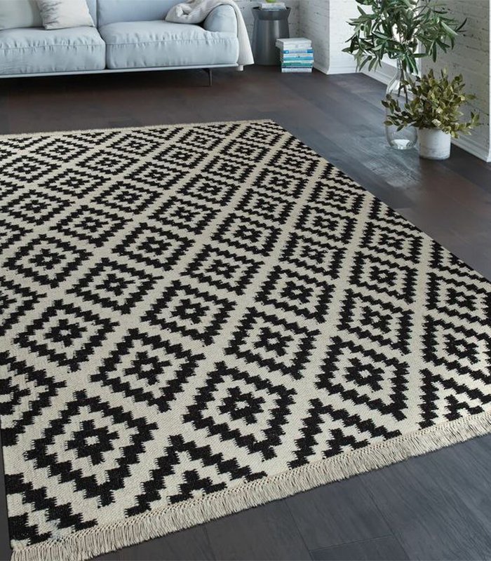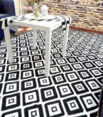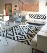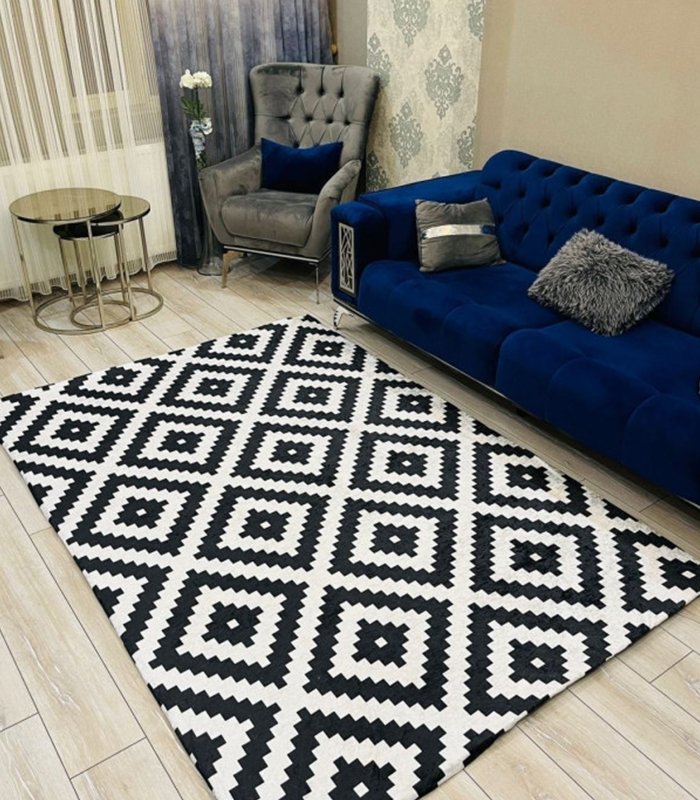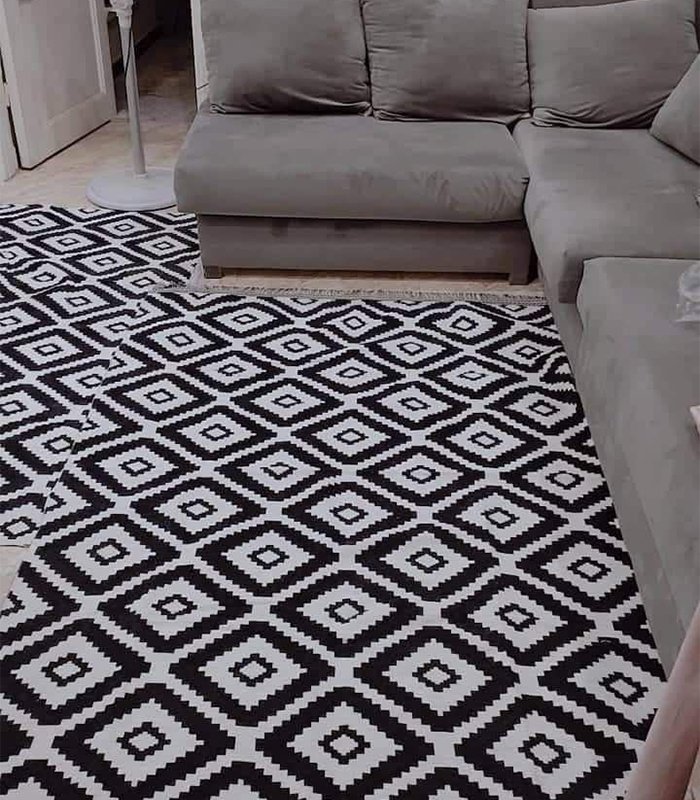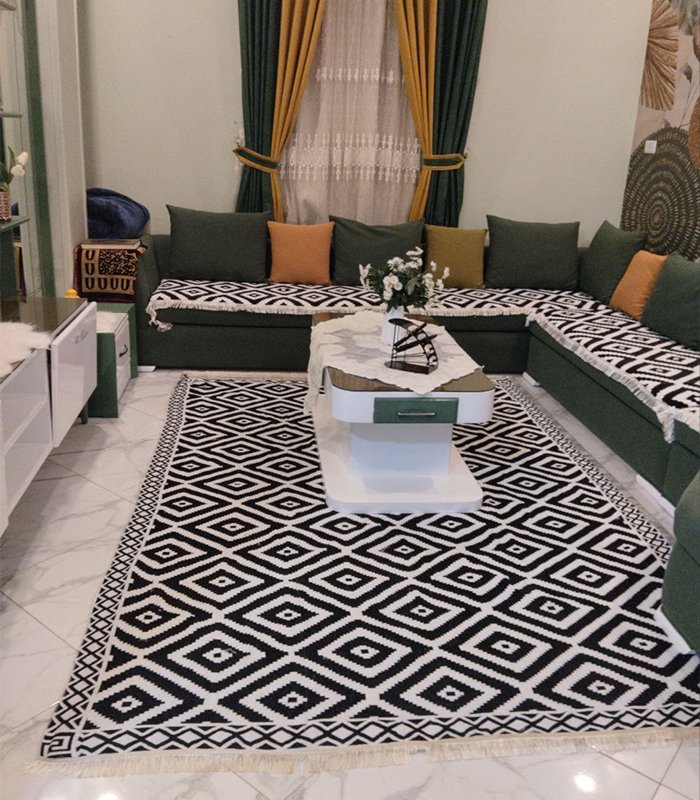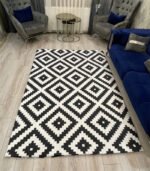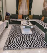 التصميم: غطاء سجادة بنمط أسود وأبيض عصري، يتماشى مع مختلف أنماط الديكور الداخلي.