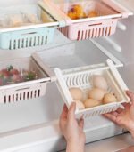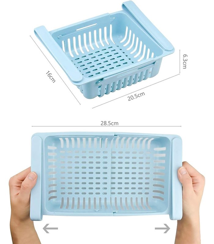 - تصميم متين وقوي – منظم درج الثلاجة مصنوع من البلاستيك خفيف الوزن والمتين. مناسبة تمامًا لمعظم الثلاجات مع آلية انزلاق تجعلها مريحة للتخزين على الرف.