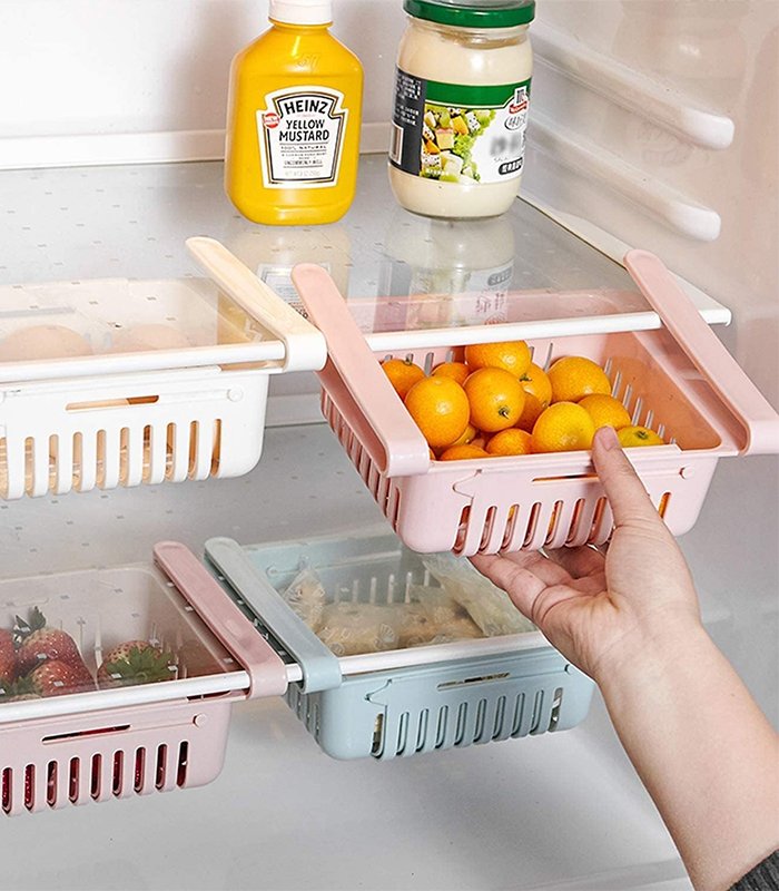 - أرفف ثلاجة متعددة الأغراض – بفضل تصميمها جيد التهوية، تساعد منظمات الثلاجة هذه على طزاجة وجفاف المحتويات داخلها. يمكنك بسهولة استخدام رف تخزين الثلاجة أثناء إعداد الطعام ثم ضعه ببساطة في الثلاجة عندما تنتهي.