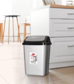 • في غرفة المعيشة: يمكن وضعه في الزاوية لتجميع النفايات الصغيرة بشكل أنيق.