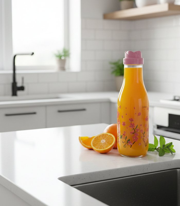 زجاجة مياه وعصير من زجاج نقي – قطعة واحده – شفاف