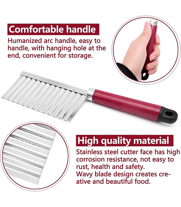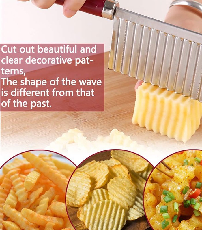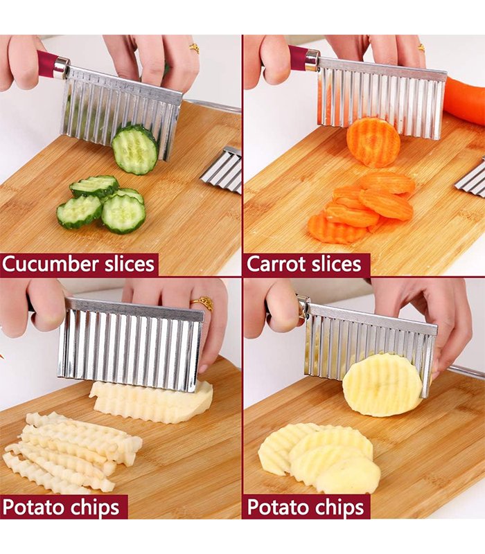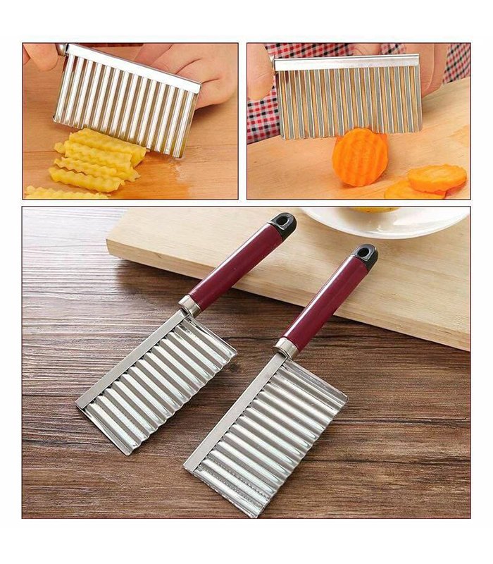 سكينة مسننة من الستانلس ستيل لتقطيع البطاطس بشكل مموج والخضروات والفواكه والجبن