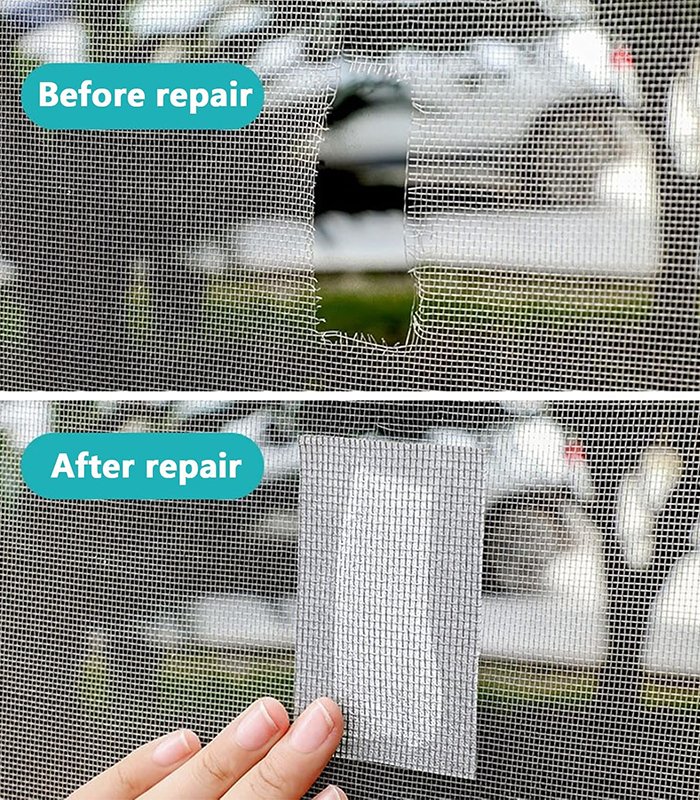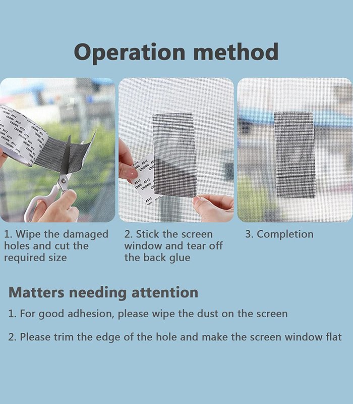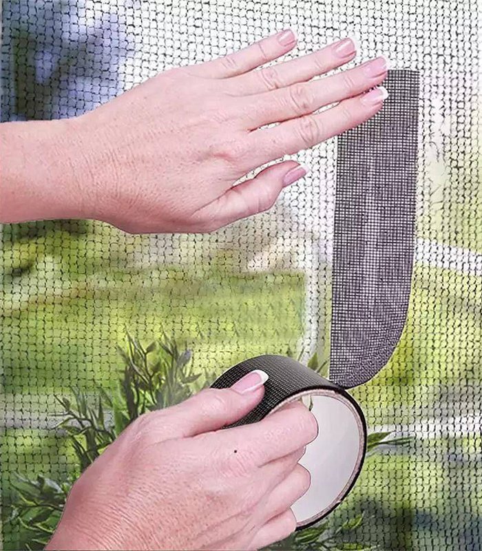 - ( وفر المال ): شريط إصلاح النوافذ والأبواب مثالي لإصلاح الثقوب أو الفتحات على أي شبك باب أو نافذة. لذا لا تضطر إلى استبدال شبك الباب أو النافذة بالكامل بسبب ثقب صغير.