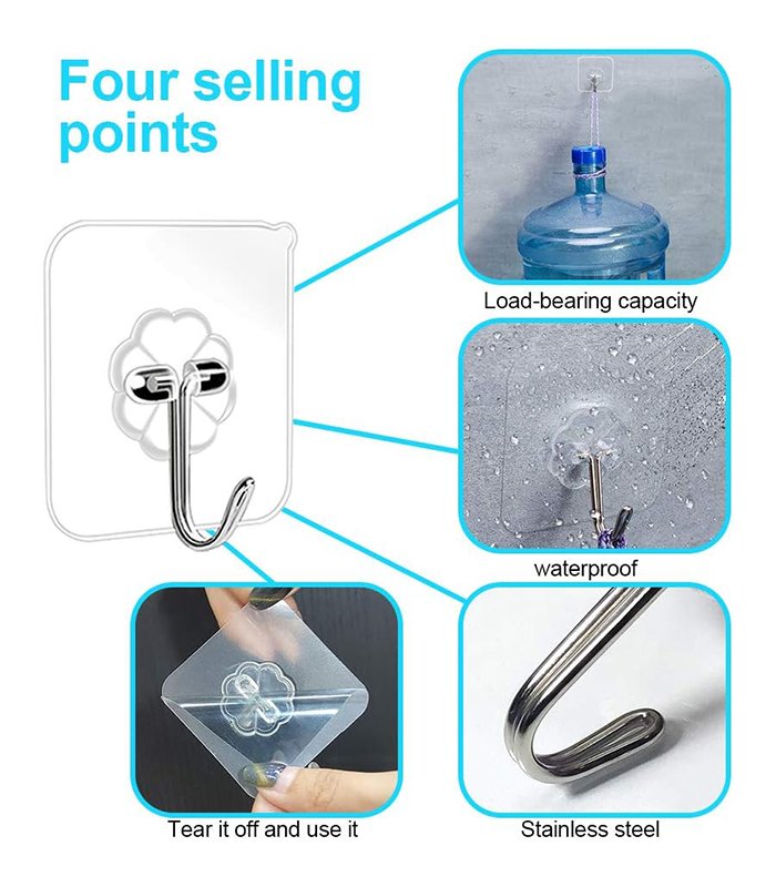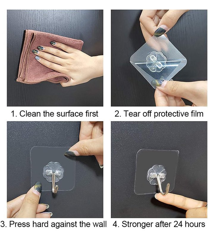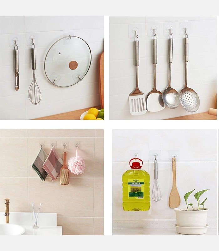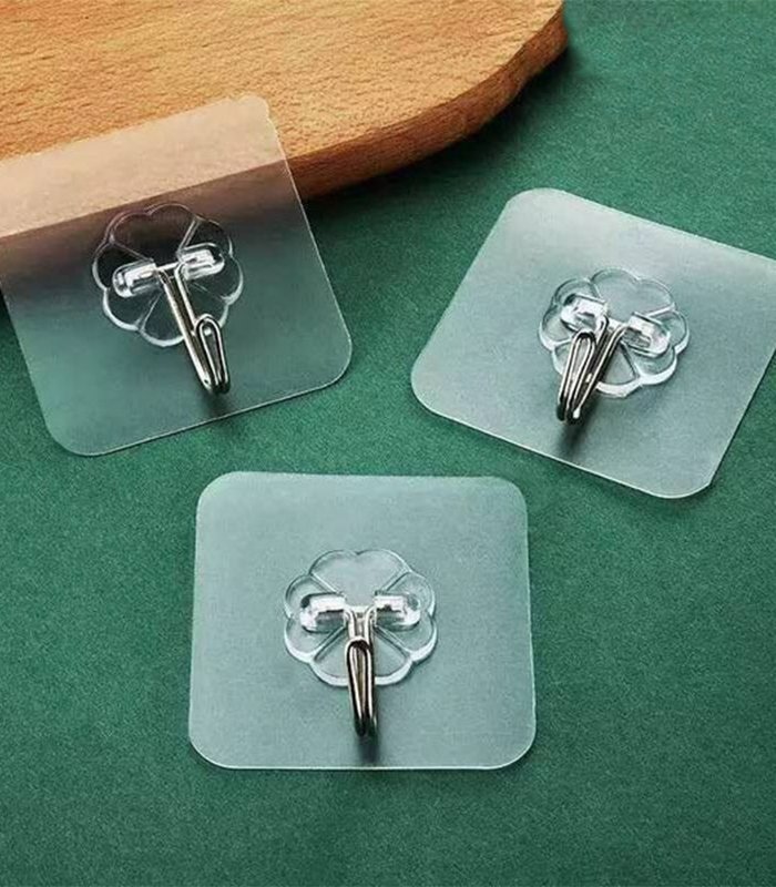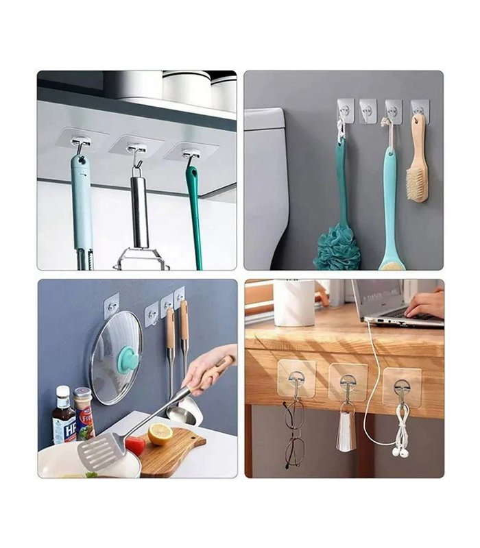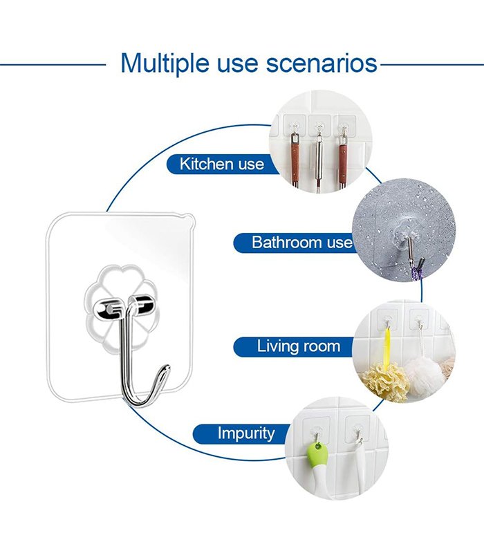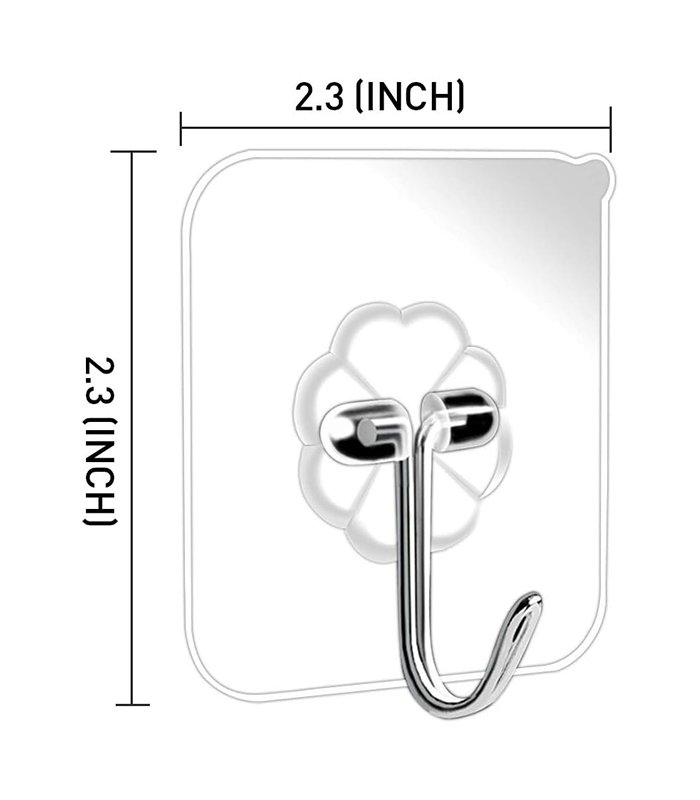 - 【خطافات لاصقة قوية】: خطاف لاصق شفاف يمكنه حمل ما يصل إلى 6.8 كجم، المقاس: 6 سم (طول) × 6 سم (عرض). مثالي لتعليق البالطو والفوط والجواكيت والأرواب والشراشب والمقشات والطواقي والشنط والشماسي والسكارفات والمفاتيح والمحافظ والنباتات وأدوات تناول الطعام والملاعق ومغارف الشوربة وملاعق السباتولا والأواني