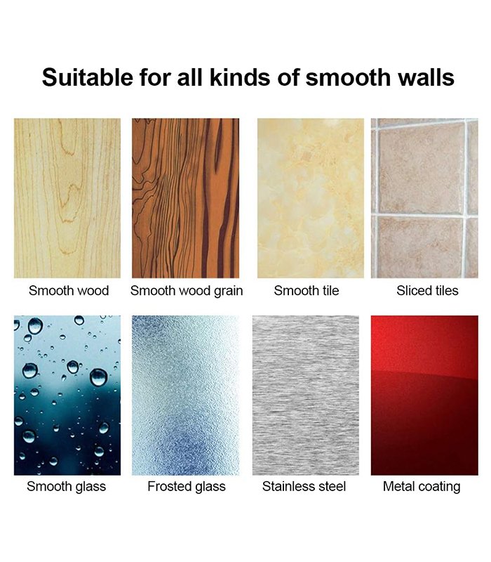 - 【مواقع واسعة】: يمكن أن تعمل على الأسطح الملساء الصلبة مثل بلاط السيراميك وباب الفريزر ودولاب الملابس والرخام والبلاط الخشبي والمراية والفولاذ المقاوم للصدأ والأكريليك والبلاستيك والأسطح المعزولة وأكثر من ذلك. أما الجدران الجيرية والمطلية والجافة وورق الحائط ذو النقشة البارزة والملمس فإنه غير مستحسن التعليق وإلا سيسقط الخطاف وسيتلف جدارك