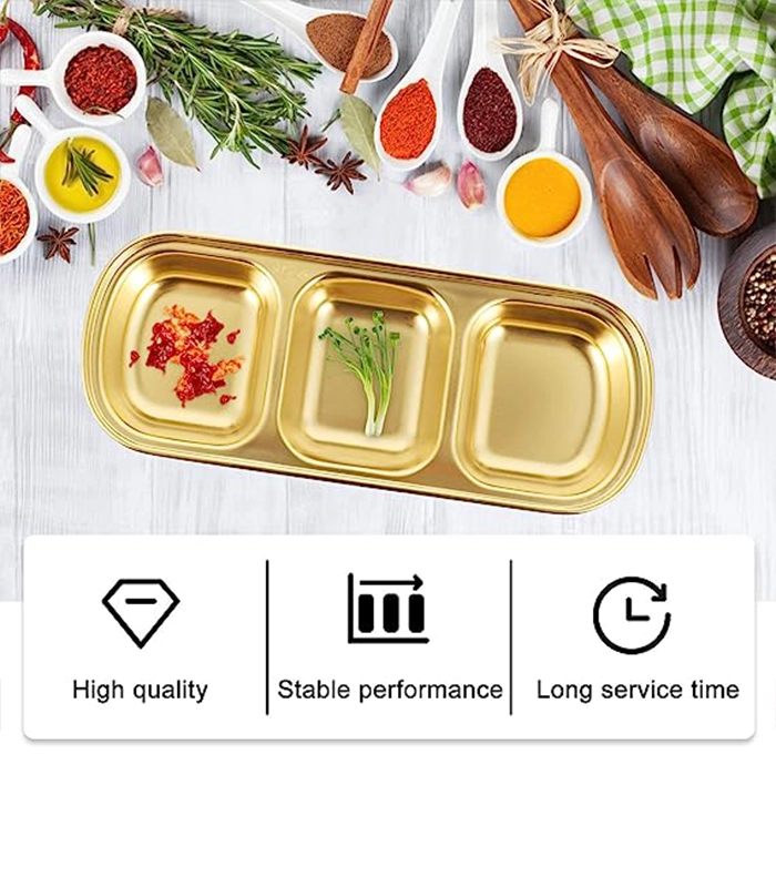 - تم تصميم هذه الصينية المقسمة للتخزين القابل للتكديس، والتي لن تشغل مساحة تخزين كبيرة في الخزانة. يتميز هذا الطبق المصنوع من الستانلس ستيل بسطح أملس، وهو سهل التنظيف للغاية، ويمكن غسله، كما أنه مناسب لغسالات الأطباق ومعقم أواني المائدة.