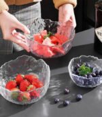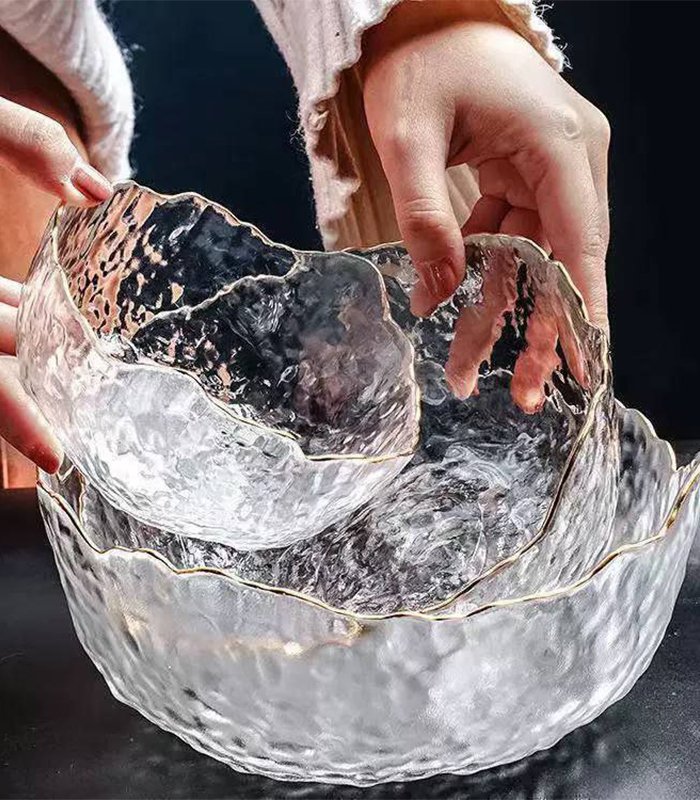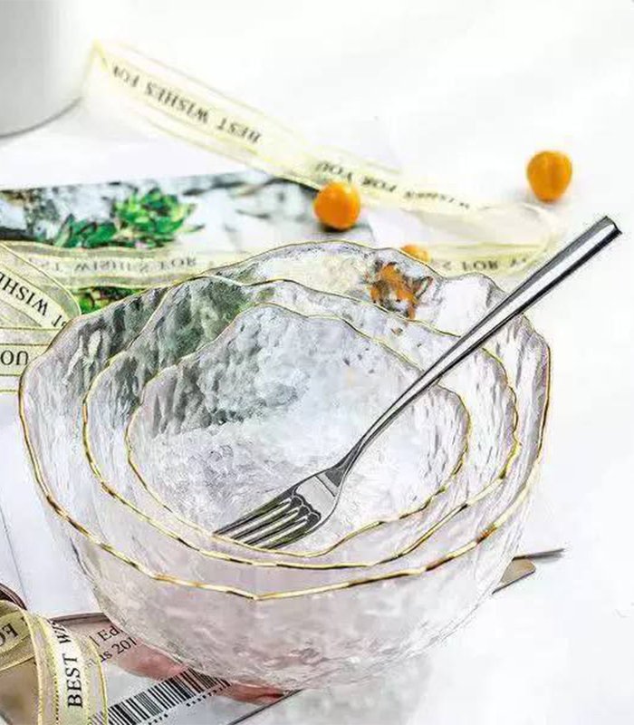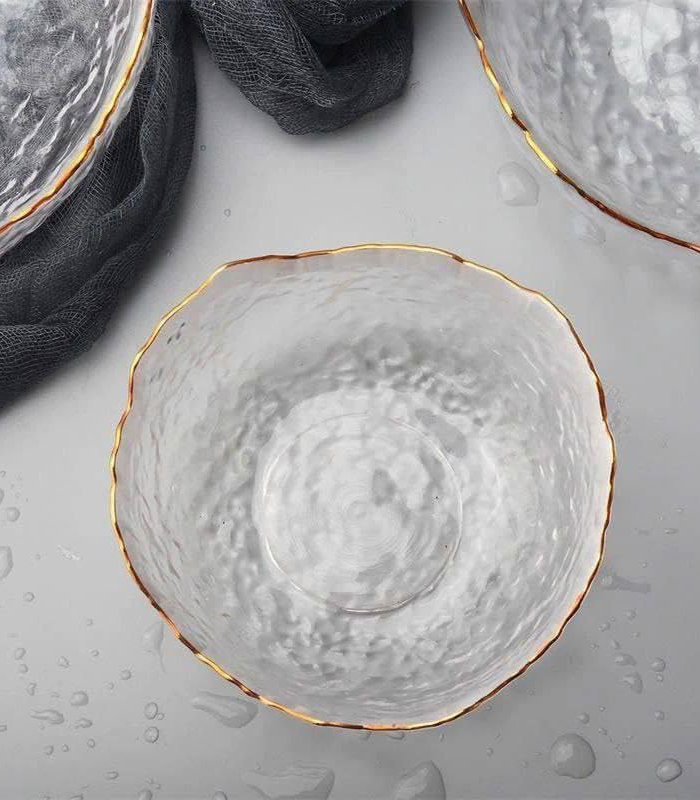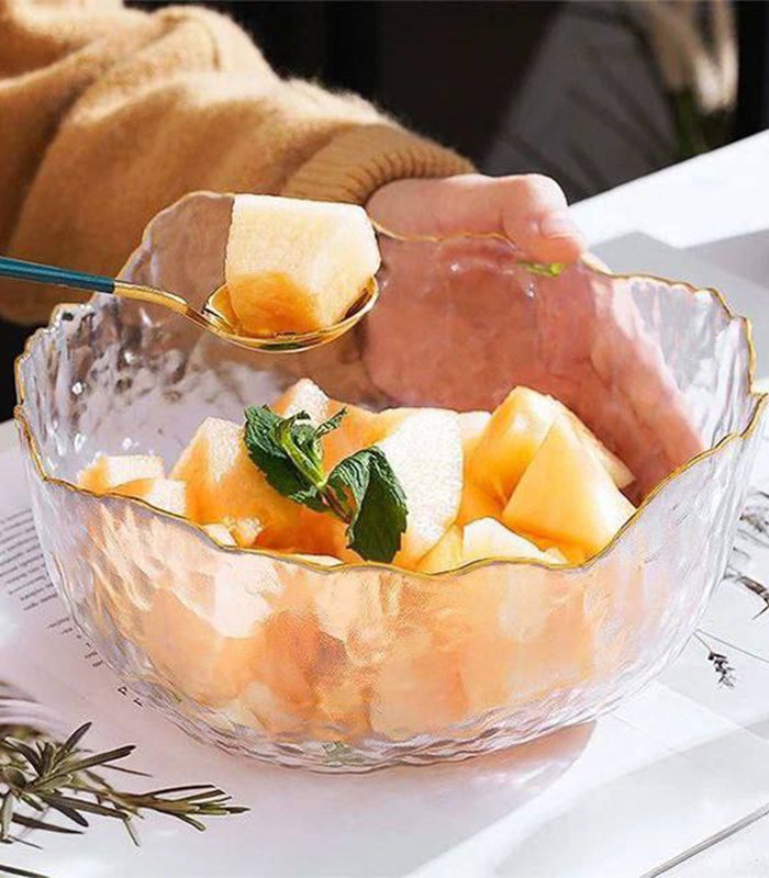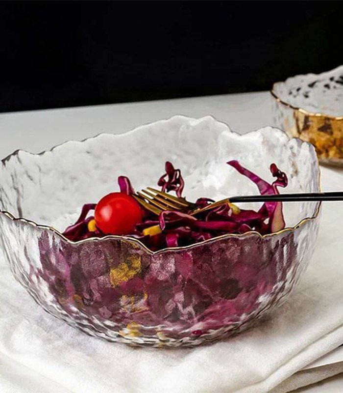- وعاء سلطة زجاجي: يتميز بتصميم أنيق وزخرفي يضيف لمسة من الفخامة إلى طاولة الطعام. تتميز بسعة كبيرة لإعداد وتقديم مجموعة متنوعة من السلطات والمقبلات بعناية بأناقة.
