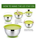- (هدية رائعة) 5 أوعية سلطة مع 5 أغطية وأسفل ملونة – أخضر وأزرق وأحمر وبرتقالي وأرجواني، حافة ناعمة وعريضة توفر قبضة مريحة، لن يترك السطح الخارجي المصقول بصمات الأصابع للحفاظ على مظهره الأنيق، مناسب للثلاجة والفريزر وخزانة المطبخ، مجموعة أدوات كهدية جيدة للانتقال إلى منزل جديد والكريسماس وأعياد الميلاد والزفاف.
