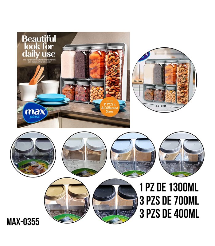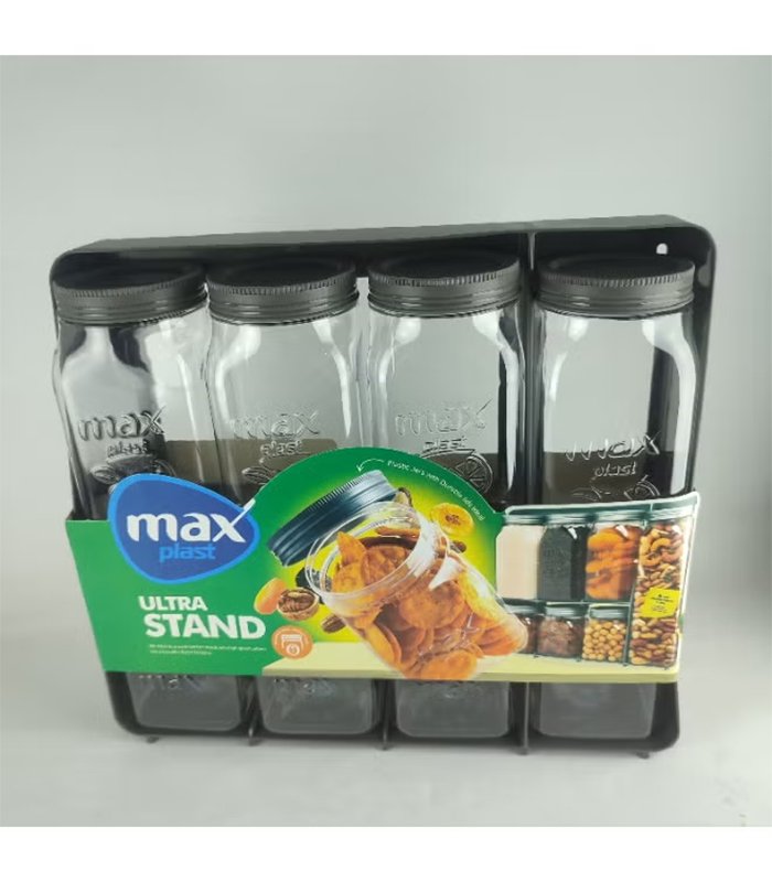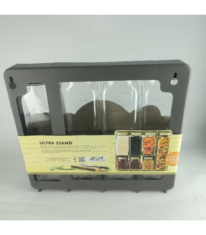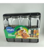 طقم توابل الترا من ماكس هو الحل الأمثل لتنظيم مطبخك، حيث يتضمن 7 قطع من العلب مع استاند أنيق.