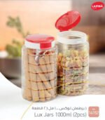 طقم 2 برطمان تخزين بلاستيك شفاف LAMSA LUX بغطاء– سعة 1000 مللي