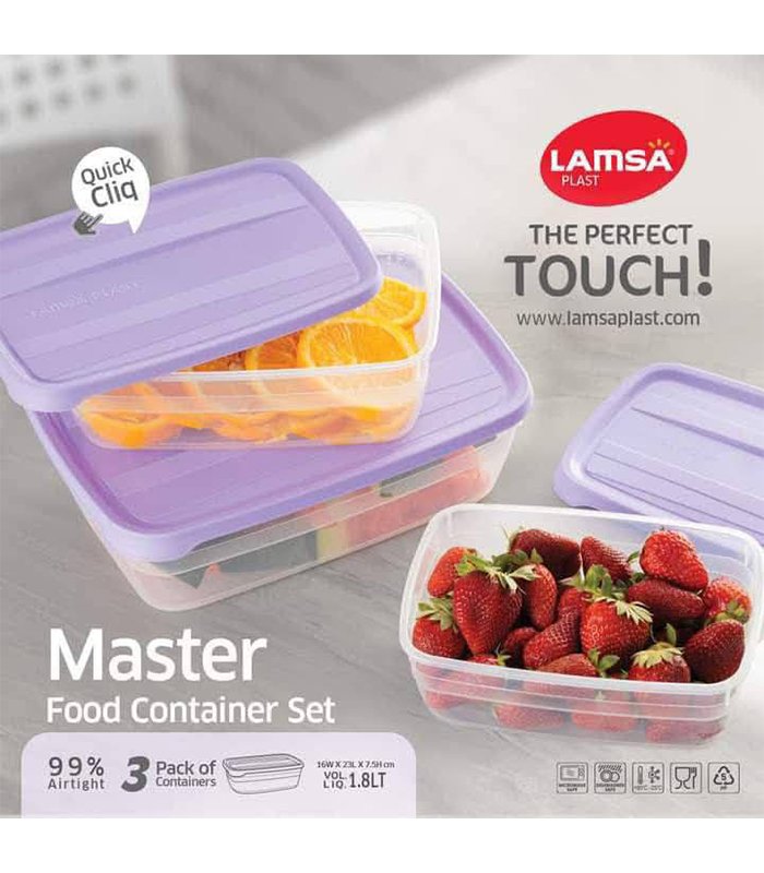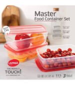 علب حفظ طعام مستطيلة ماستر من لمسه، مصنوعة من البلاستيك، مجموعة من 3 قطع، سعة 1.8 لتر