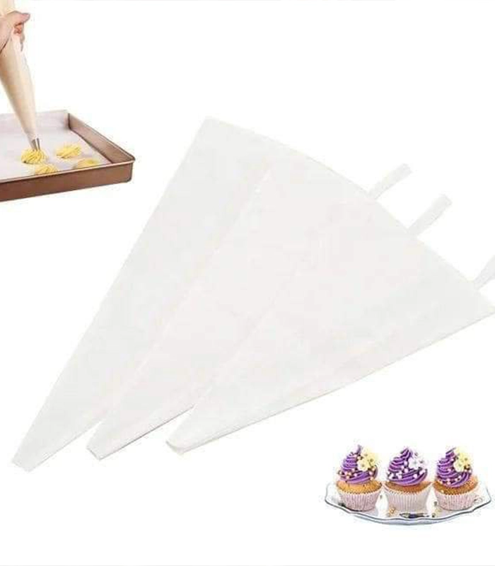 - الطبقة الخارجية من كيس تزيين الحلويات مصنوع من القطن، بينما الجزء الداخلي مصنوع من خامة خاصة لجعلها ناعمة لضغط الكريمة أو طبقة التزيين.
