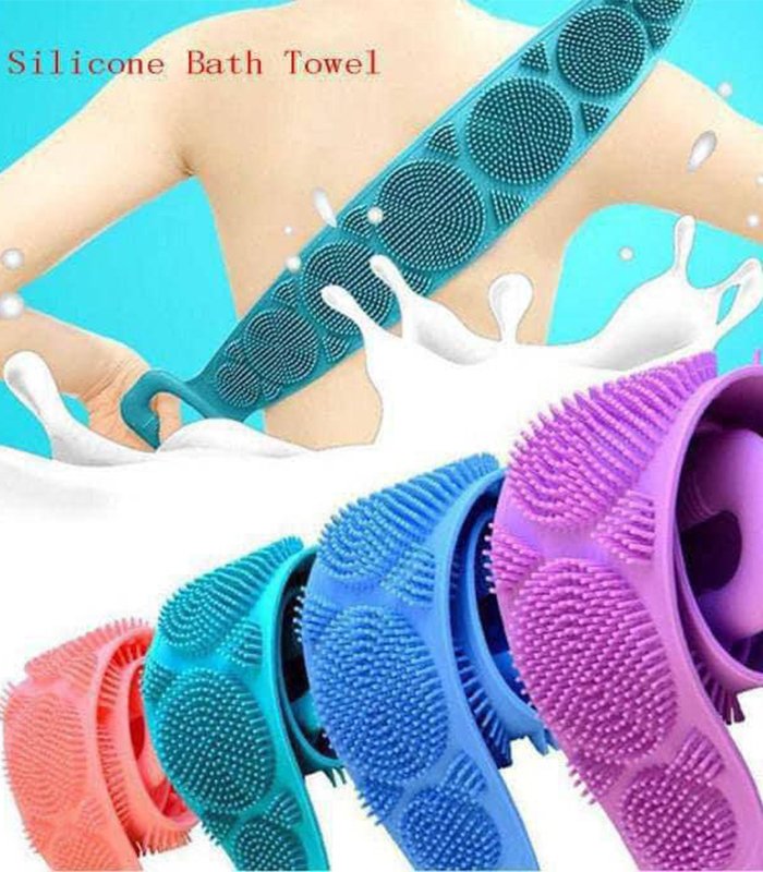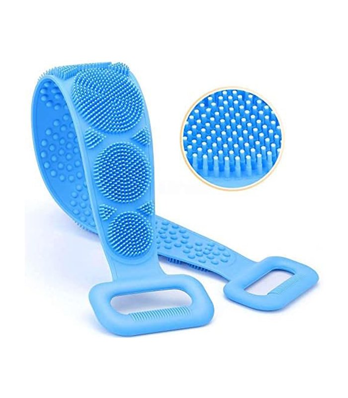 ليفة استحمام سيليكون بشكل حزام مزدوج الجانب مقاومة للماء وسهلة الاستخدام لتدليك وتنظيف الظهر وتقشير الجسم وتنظيف القدمين