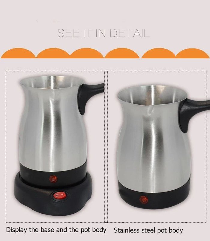 ماكينة كهربائية ستانلس ستيل لتحضير القهوة التركية، فضي