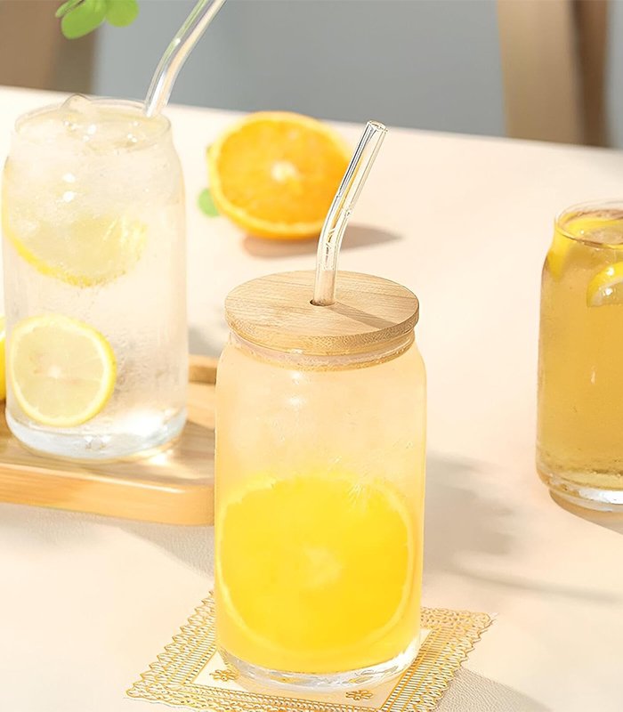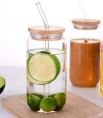 مج شرب زجاجي شفاف متعدد الاستخدامات مع غطاء وماصة، مثالي للقهوة المثلجة والماء والكوكتيلات الصيفية – سعة 500 مللي