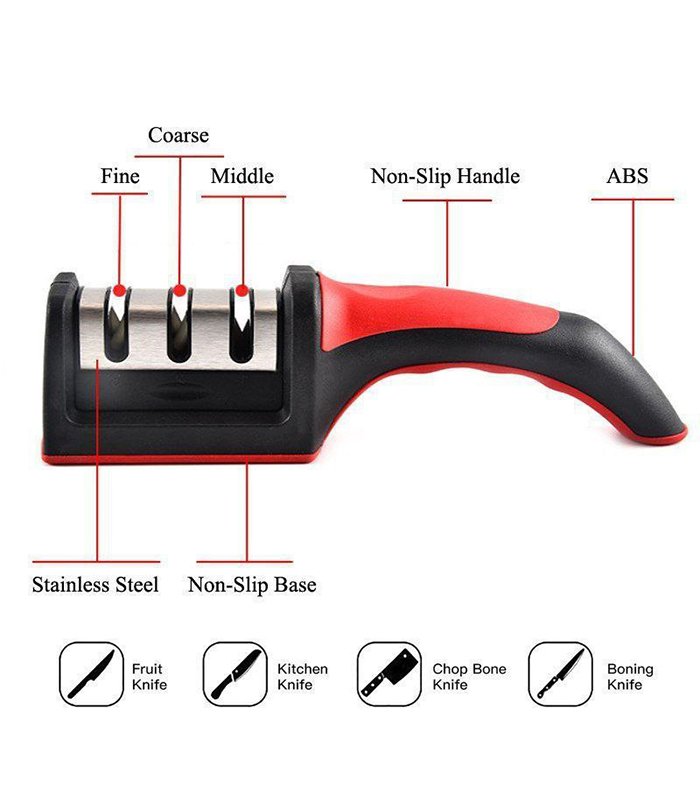 مسن سكاكين من 3 رؤوس يناسب جميع أنواع ومقاسات السكاكين