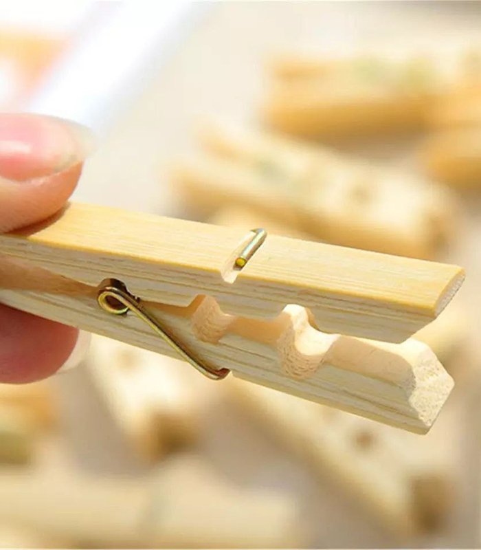 مشابك الغسيل الخشبية توفر لك حلاً عملياً لتثبيت الملابس أثناء الغسيل. مصنوعة من خشب البامبو الأصلي، تتميز هذه المشابك بجودة عالية تضمن استخدامها لفترات طويلة دون التآكل أو التلف.