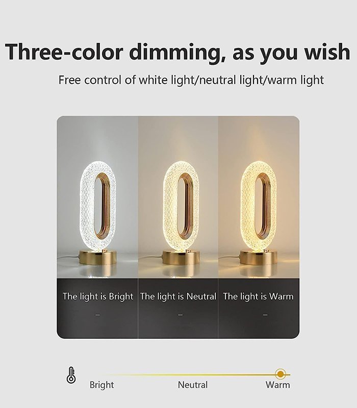 - المواد: مكتب كيوت سو الإبداعي البيضاوي ومصباح LED مصنوعان من معدن عالي الجودة وأكريليك. مزيج من هذه المواد يعطي المصباح مظهرًا متينًا وأنيقًا. يضيف الإطار المعدني لمسة من الأناقة، بينما توفر مكونات الأكريليك مظهرًا أنيقًا وعصريًا.