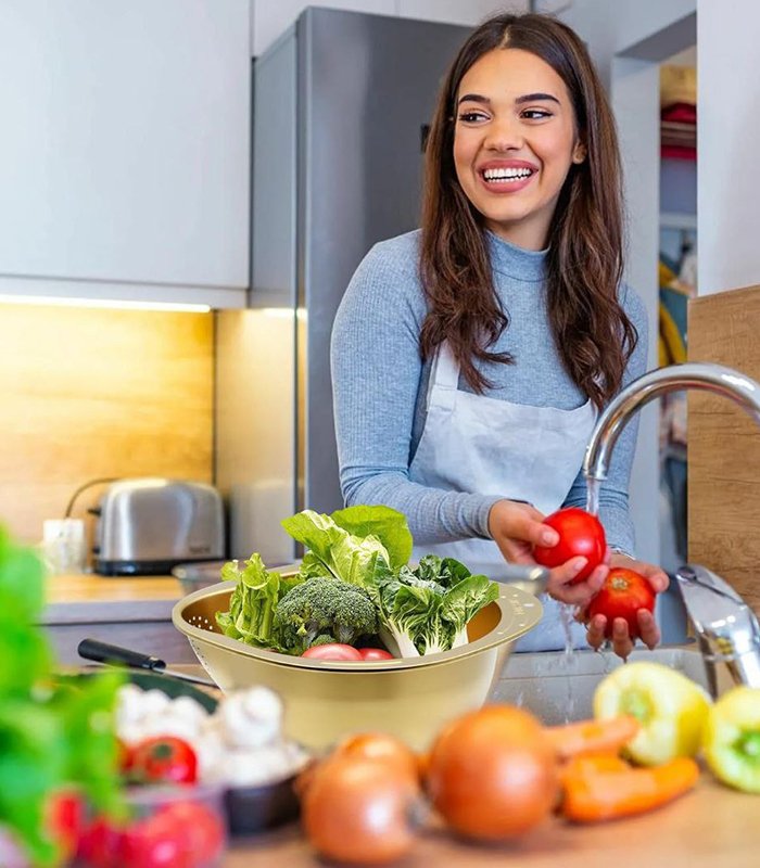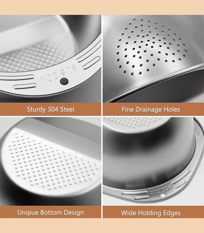 - ️(فعالة وآمنة للاستخدام): توفر فتحات التصريف المتباعدة بالتساوي على جانب الصفاية تصريفًا سريعًا مع الحفاظ على الطعام في المصفاة. وهذا يجعلها سهلة وآمنة للاستخدام لأي طباخ منزلي أو طاهي محترف.