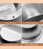 - ( جودة ممتازة): الصفاية الخاصة بنا مصنوعة من الفولاذ المقاوم للصدأ السميك الآمن غذائيًا والمقاوم للتآكل ومتين، مما يضمن عمر خدمة طويل. إنها إضافة موثوقة لأي مطبخ.