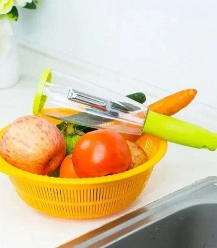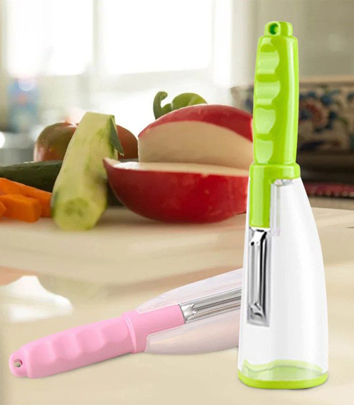 مقشرة فواكه وخضروات 3 في 1 مع صندوق تخزين، سكين تقشير متعدد الوظائف من الستانلس ستيل، مقشرة منزلية للفواكه والخضروات