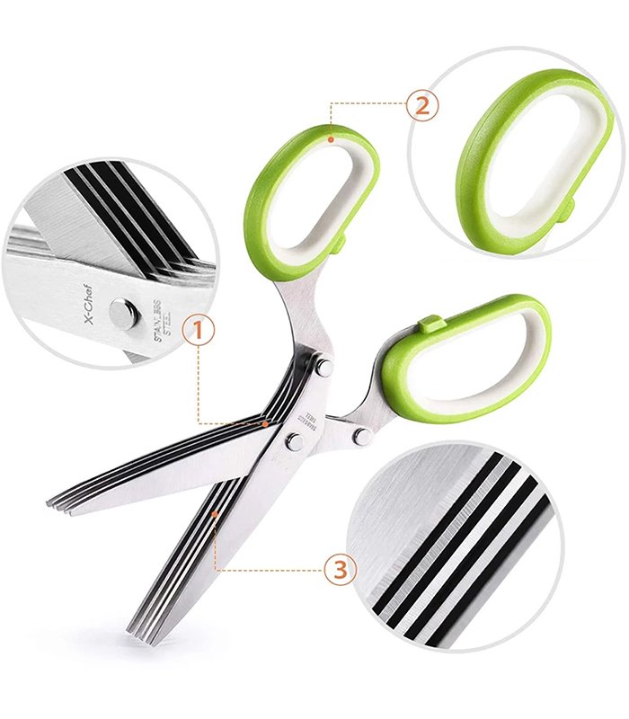 مقص خضروات، 5 شفرات من الفولاذ المقاوم للصدأ،، مقبض مطاطي مانع للانزلاق